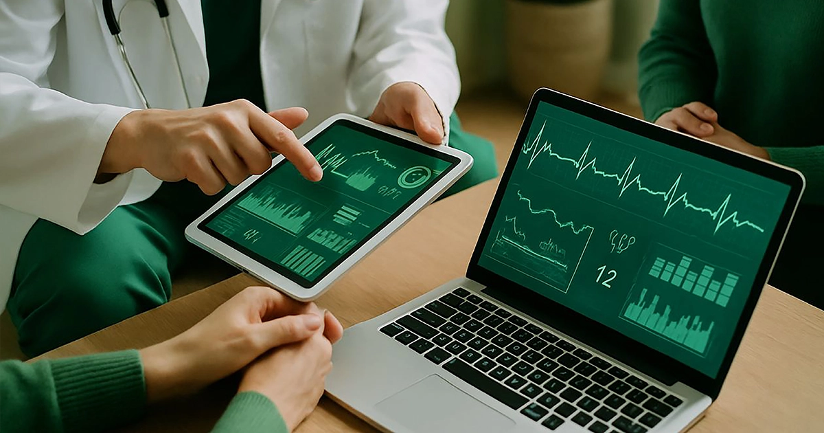 medico che valuta un paziente con il supporto di un pc e un tablet